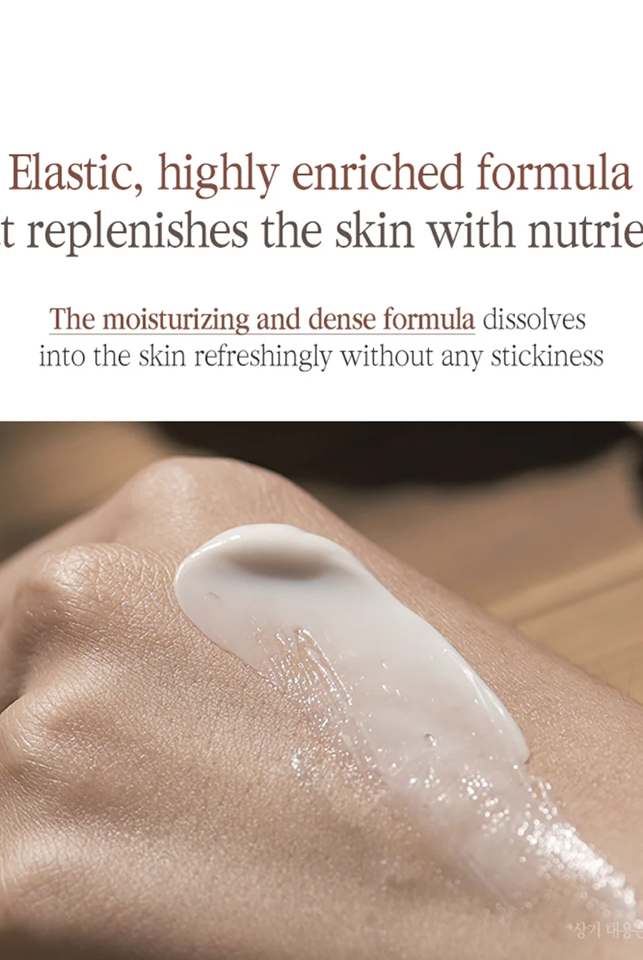 El ingrediente clave, el extracto de ginseng, rico en saponina, promueve la síntesis de colágeno, mejorando y previniendo los signos de la edad. Su fórmula refrescante y no pegajosa se absorbe rápidamente para calmar y retener la hidratación, reduciendo las arrugas.