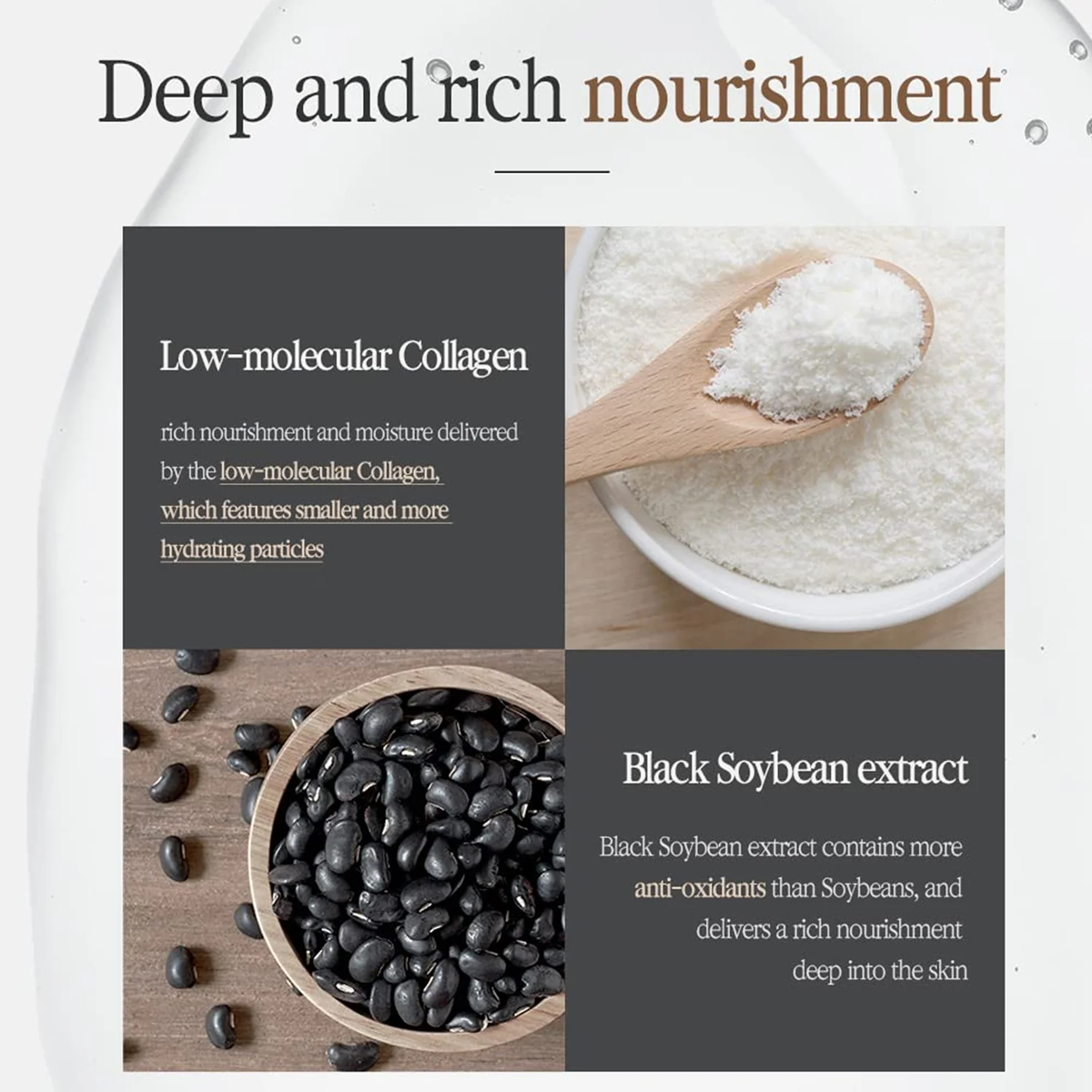 Agua, glicerina, dipropilenglicol, trietilhexanoína, bis-digliceril poliaciladipato-2, alcohol cetearílico, poliestireno-3 diestearato, manteca de karité (Butyrospermum parkii), niacinamida, ciclopentasiloxano, metilpropanodiol, estearato de glicerilo, caprilato de glicerilo, carbómero, sesquioleato de sorbitán, citrato de estearato de glicerilo, metil estearoil taurato de sodio, hidróxido de potasio, triglicérido caprílico/cáprico, etilhexanoato de cetilo, palmitato de etilhexilo, adenosina, etilhexilglicerina, acetato de tocoferilo, EDTA disódico, lecitina hidrogenada, extracto de raíz de Panax ginseng, extracto de hoja de Camellia sinensis, extracto de Tremella fuciformis (hongo), butilenglicol, macadamia. Aceite de semilla de Ternifolia, pentilenglicol, hidroxiacetofenona, caprilil glicol, 1,2-hexanodiol, colesterol, esteroles de Brassica campestris (colza), fitosteril/behenil/octildodecil lauroil glutamato, poligliceril-10 oleato, cetilfosfato de potasio, ceramida NP, extracto de raíz de Astragalus membranaceus, ceramida NS, ceramida EOP