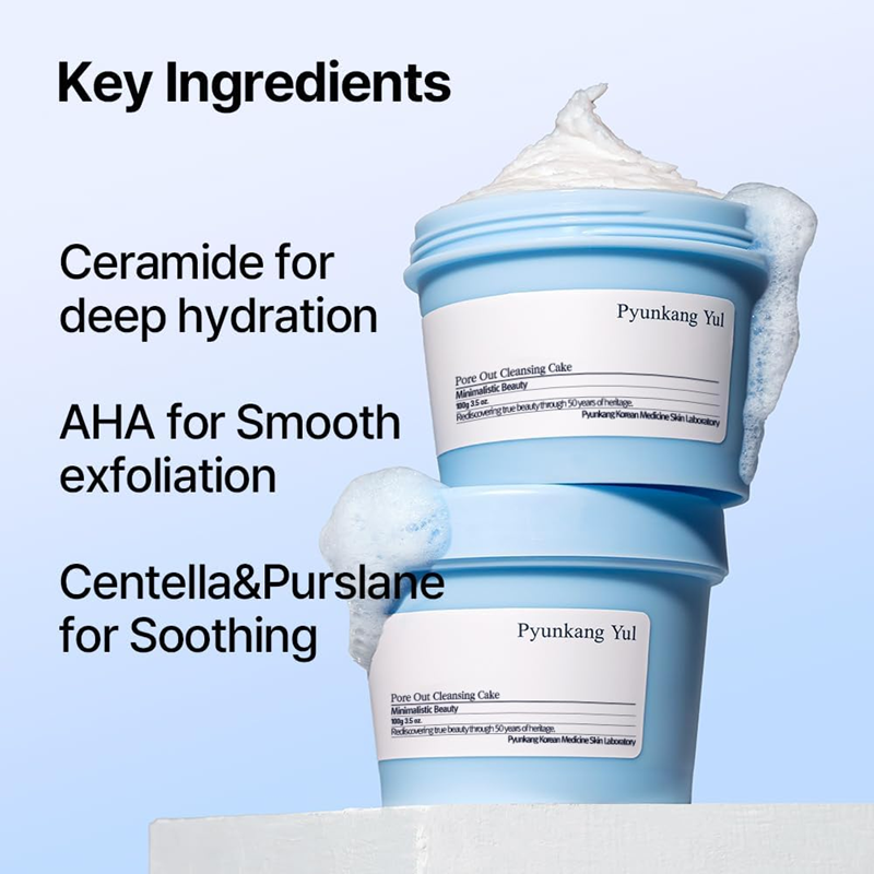 El limpiador facial Pyunkang Yul Pore Out Cleansing Cake es un limpiador profundo y sin residuos con una cremosa textura de arcilla. Enriquecida con polvo de arroz fino, AHA, hamamelis y extracto de frijol mungo, elimina suavemente las impurezas a la vez que rehidrata la piel. Dermatológicamente probada y elaborada con ingredientes de grado ecológico EWG para una limpieza suave y no irritante.